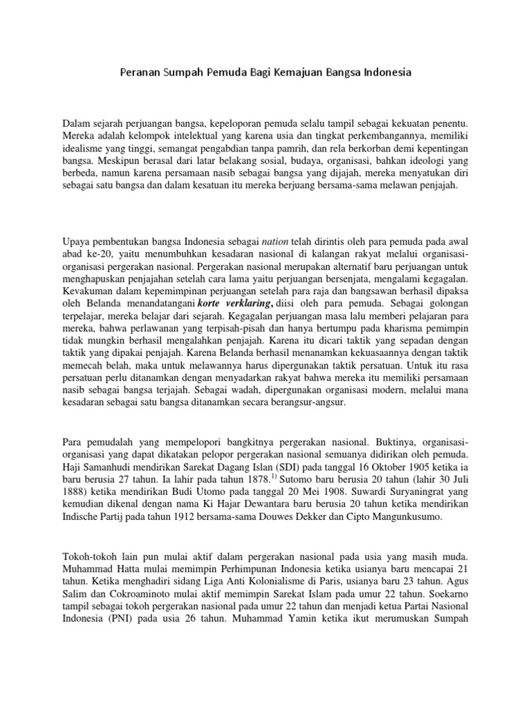 Mengapa sumpah pemuda dikatakan sebagai pendorong pergerakan nasional. Maybe you would like to learn more about one of these? Check spelling or type a new query. We did not find results for: