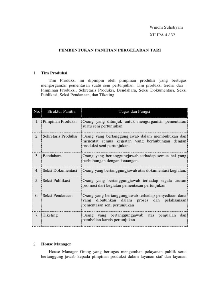 Susunan panitia penasehat penanggung jawab ketua sekretaris bendahara Sekretaris tugas pokok sekretaris dalam suatu kegiatan pameran atau suatu organisasi di antaranya menulis seluruh kegiatan panitia selama penyelenggaraan pameran. Bidang tugas ketua dan penolong ketua kelas. 139 biasanya pake forum, jadi ketua diskusi dulu dengan sekretaris bendahara mbak, dilist apa yang akan dibahas baru disampaikan ke forum.dikumpulin semua itu mbak di satu kelas. 37 full pdfs related to this paper.